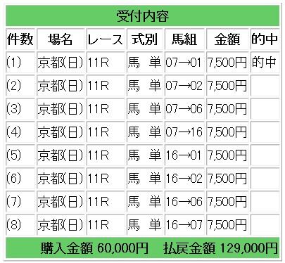 11月23日:マイルチャンピオンシップ(6万円勝負レース)+3万円勝負レース