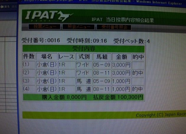 好成績の小倉競馬と併せて大きな利益が期待できます。