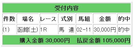 ↓ダービーは11万6000円獲得!
