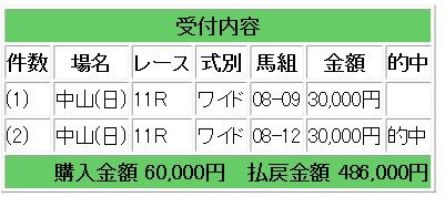 会員様には8ジャンタルマンタルからのワイド2点指示で16.2倍的中となり、48万6000円の払い戻しとなりました。