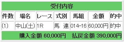 会員様には上記情報馬からの馬連1点指示で6.5倍的中となり、39万円の払い戻しとなりました。