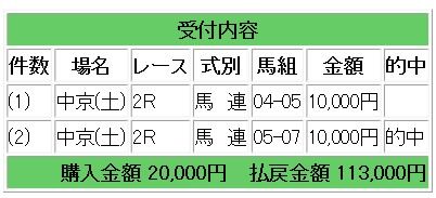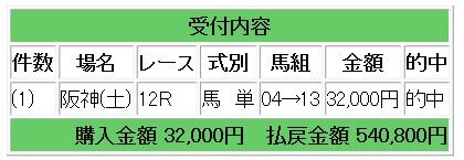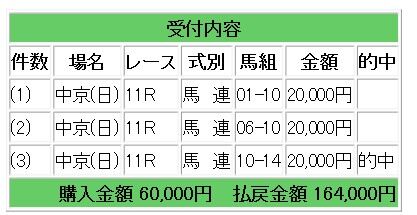 10サトノレーヴからの馬連3点指示で8.2倍的中となり、16万4000円の払い戻しとなりました。
