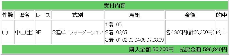 強力厩舎情報馬5ミヤビパーフェクトが情報通り1着となり、3連単138.8倍的中で59万6840円の払い戻しとなりました。