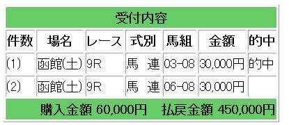 上記情報馬からの馬連2点指示で15倍的中となり、45万円の払い戻しとなりました。